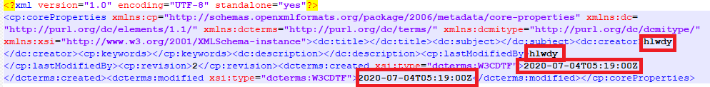 这里可以找到创建者,最后一次保存者,创建时间和修改日期,储存着文档的属性信息。