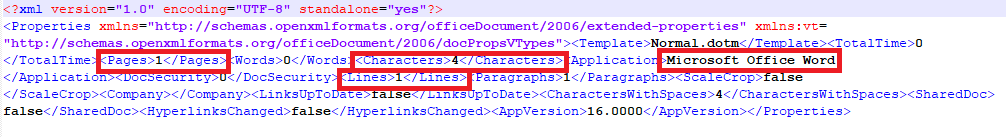 这里储存着文档属性中的程序名称(Microsoft Office Word),页数,字符数,行数等信息。