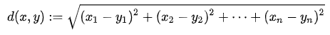 在判断两个脸部的相似度的时候,我们用到一个公式来进行计算欧氏距离(欧几里得距离)