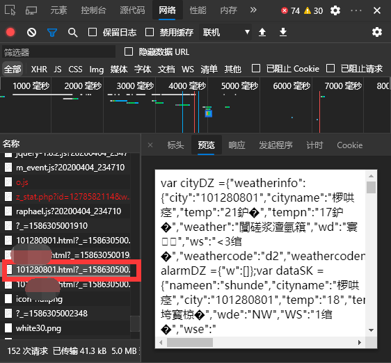 通过分析我们可以很容易看出来,这个请求就是获取天气信息的请求