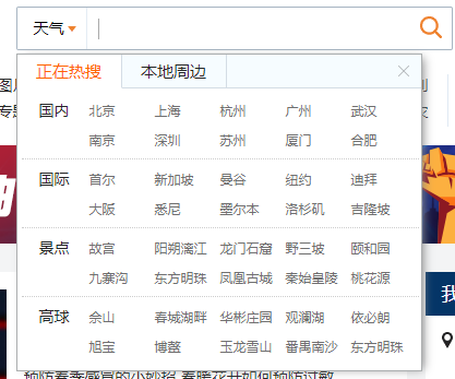 我们发现,上方有城市搜索框
