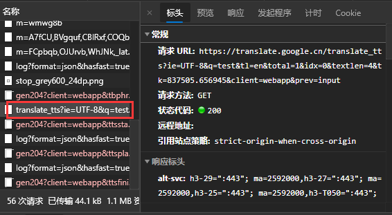 根据我们上次的经验,我们可以知道:q为源文本,tl为朗读的语言,tk为验证参数。